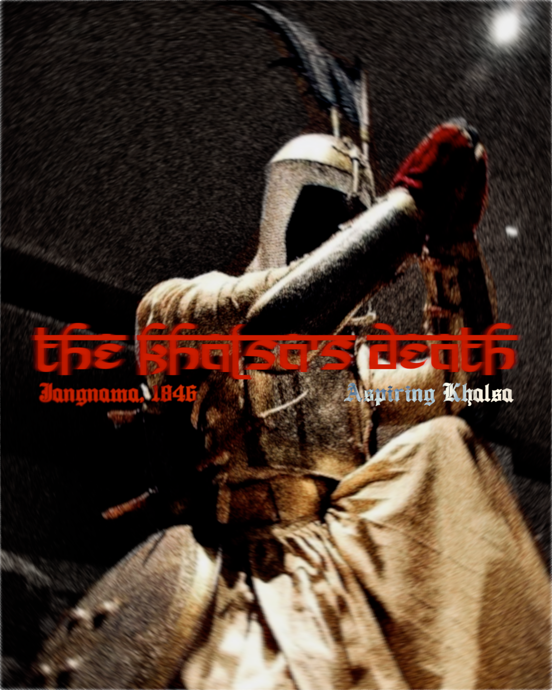 By the time of Jangnama, the 10th Guru’s mission for the Khalsa, ਰਾਜ ਕਰੇਗਾ ਖਾਲਸਾ / Raj Karega Khalsa (the Khalsa will rule, Tankhanama), had been maintained continuously for over 140 years— meaning the Khalsa was either seeking or achieving rule throughout this time. Writers of over this period also make clear that political sovereignty had become seared into their identity. But what happened to the Khalsa and their identity upon experiencing the abrupt fall of their empire? With signs of their fiery psyche extinguishing following the loss in the first Anglo-Sikh war, Jangnama not only recounts a glorious Khalsa, but the Khalsa’s death as well.